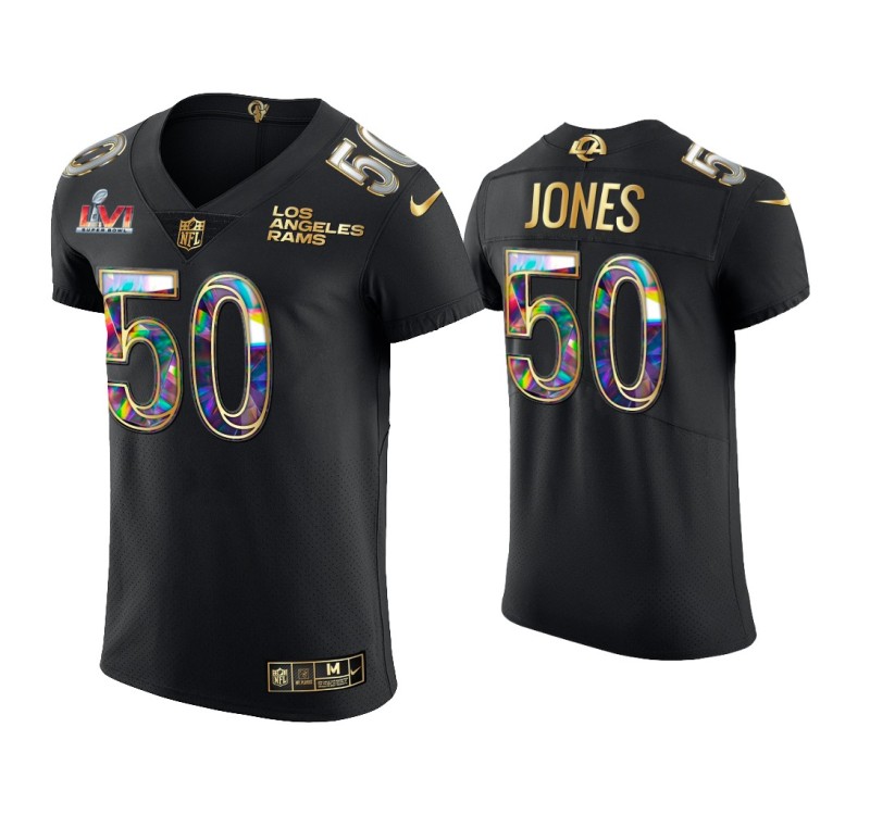 • Men Los Angeles Rams #50 Ernest Jones Black Super Bowl LVI Champions Diamond Jersey