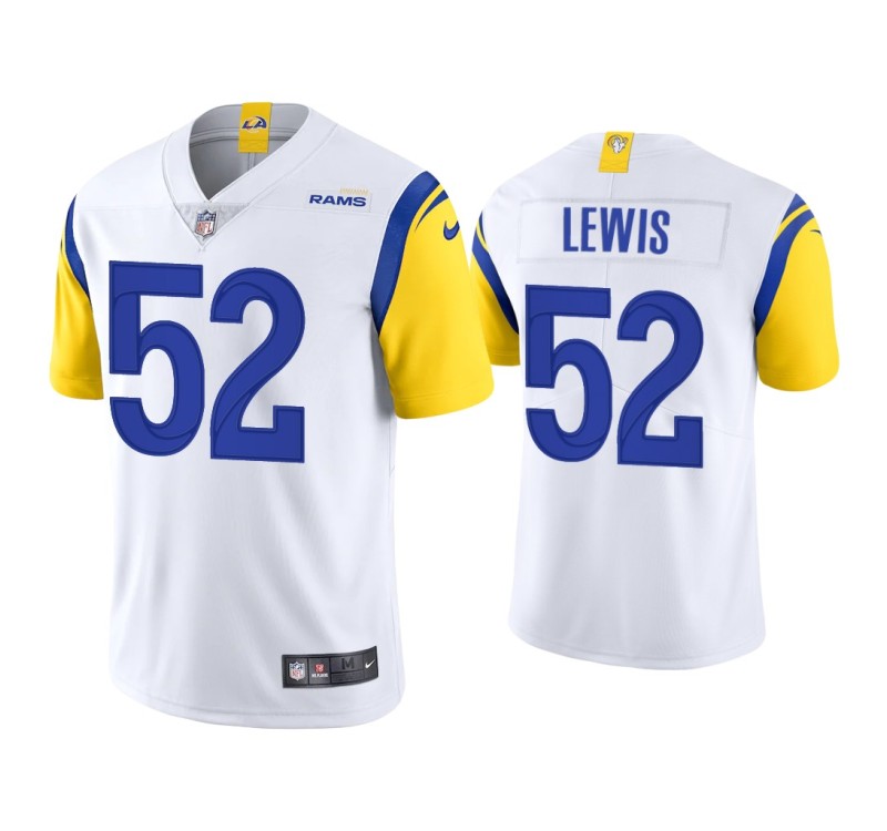Rock the look of your favorite squad when you wear the Men Los Angeles Rams #52 Terrell Lewis Vapor Limited White Jersey. It features a comfortable polyester design with quality Los Angeles Rams and Terrell Lewis embroidered graphics that will quickly make this Terrell Lewis Jersey one of your favorites.