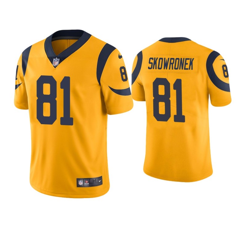 Look and feel like a big leaguer when you wear the cheap Men Los Angeles Rams #81 Color Rush Limited Ben Skowronek Gold Jersey. It features a comfortable polyester design with quality Los Angeles Rams and Ben Skowronek embroidered graphics that will quickly make this Ben Skowronek Jersey one of your favorites.