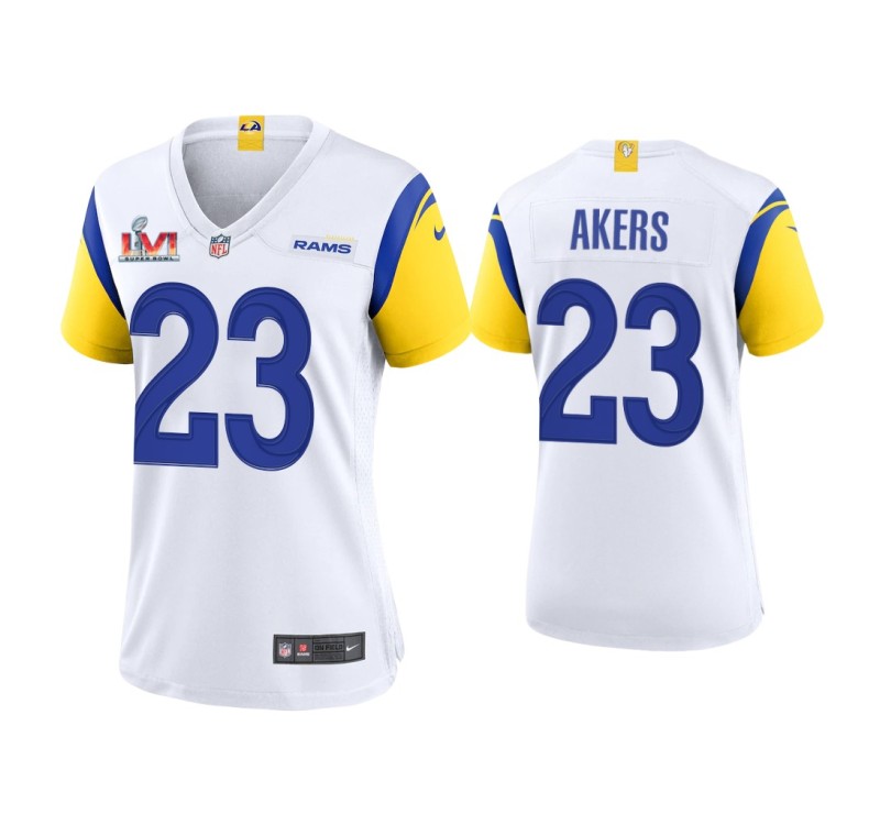 Women Los Angeles Rams #23 Cam Akers Super Bowl LVI Champions White Game Jersey